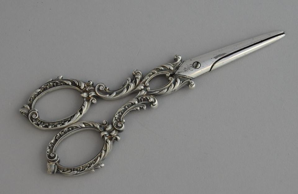 กรรไกรตัดเย็บสแตนเลสสตีลหรูหรา งานปักมือสไตล์วินเทจ ขัดเงาแบบกระจก ตกแต่งลายนูนสไตล์โบราณ ของขวัญส่วนตัว