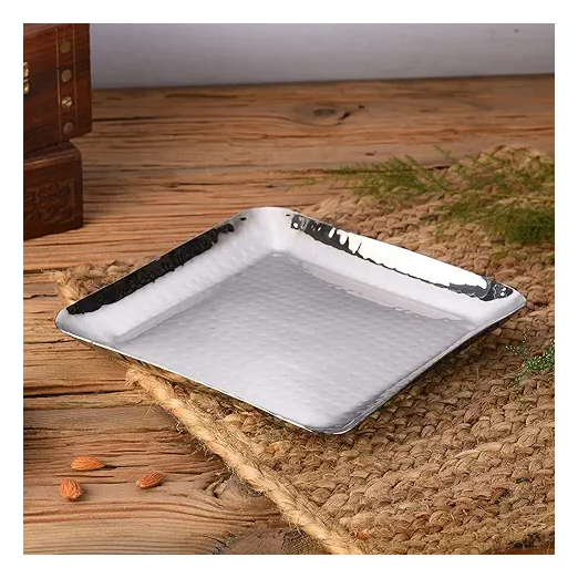 ถาดเสิร์ฟสแตนเลสขัดเงาสำหรับอาหารเช้าและของหวาน ถาดโลหะทันสมัยสำหรับใช้ในบ้าน ร้านอาหาร งานแต่งงาน และงานดิวาลี
