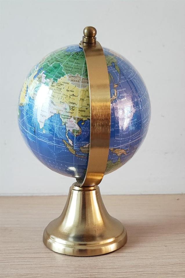 ลูกโลกสแตนเลสขัดเงาพร้อมแผนที่สลักด้วยเลเซอร์และฐานทองเหลืองแข็งแรงสำหรับห้องประชุม