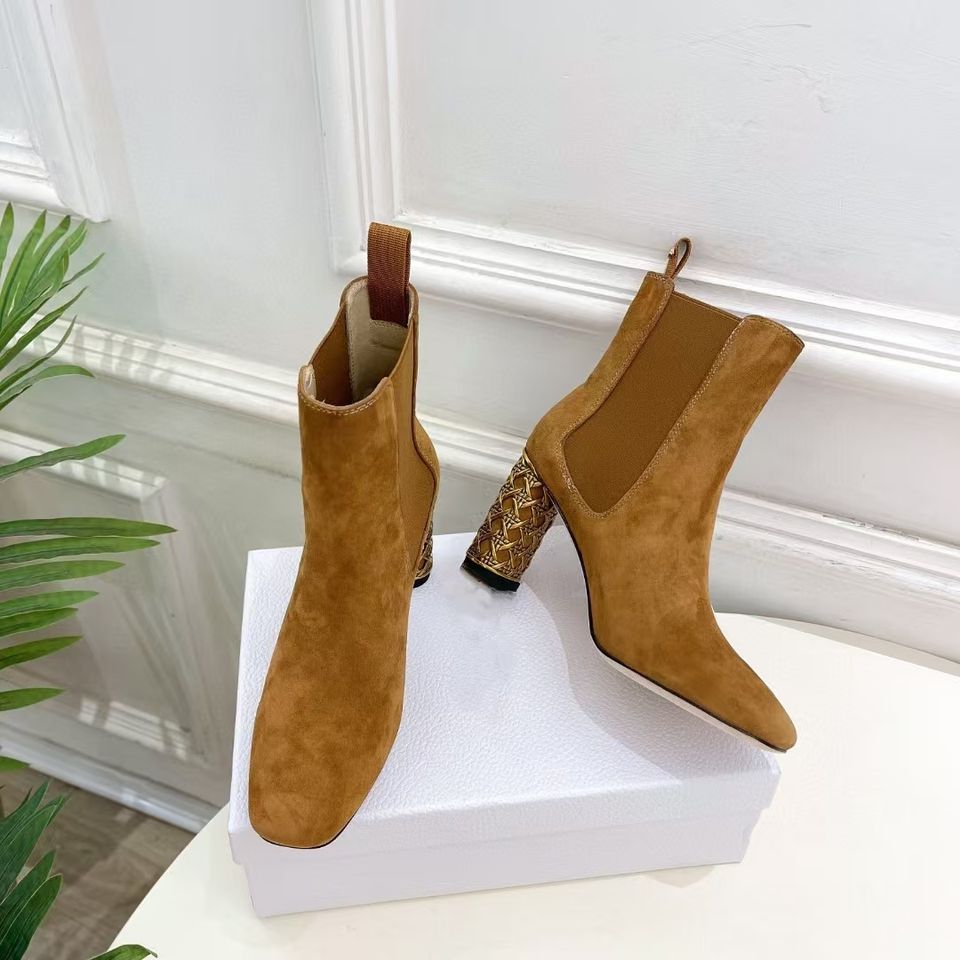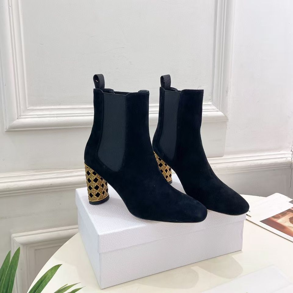 รองเท้าบูทเชลซีหุ้มข้อส้นสูง8ซม. สำหรับผู้หญิง, รองเท้ากระจกหรูหราดีไซน์ย้อนยุค