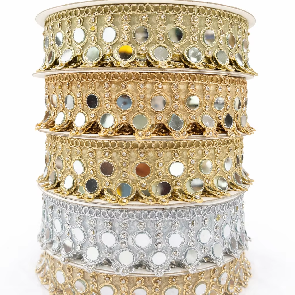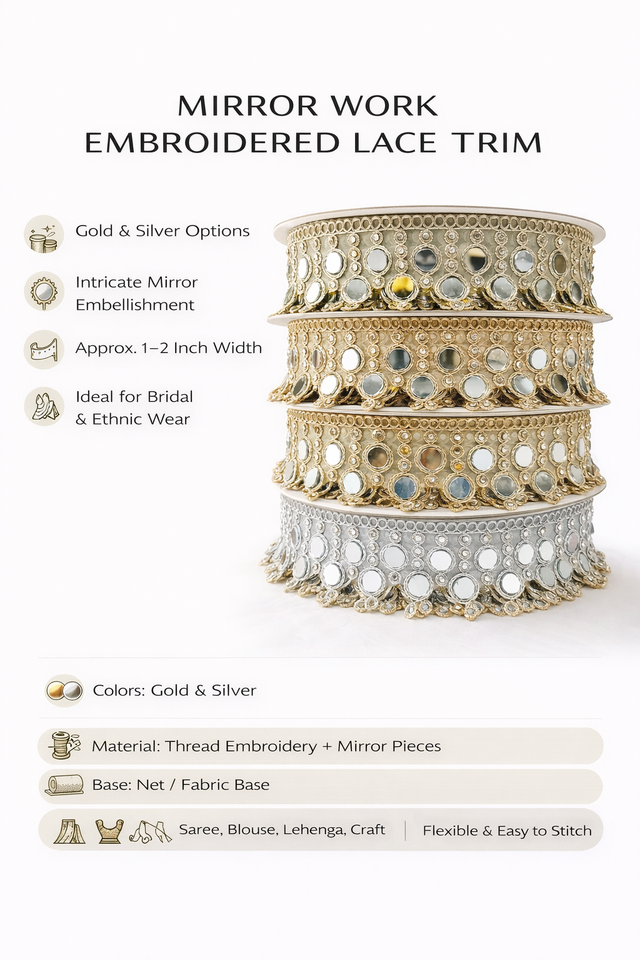 งานปักลายกระจกเงา ลูกไม้ลายฉลุละลายน้ำได้ สีทอง สีเงิน สำหรับตกแต่งขอบเสื้อผ้าเจ้าสาว รองเท้า ผ้าส่าหรี เสื้อคลุม งานฝีมือ
