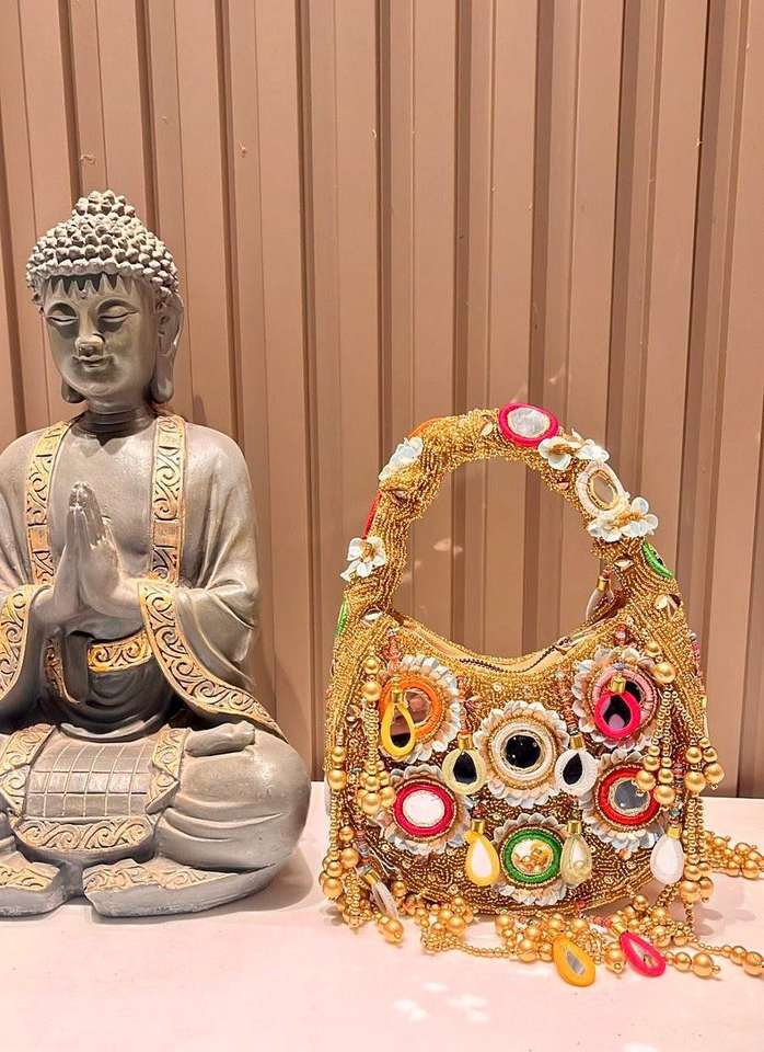 กระเป๋าคลัทช์งานปักมุกเพชรสไตล์โบฮีเมียนสำหรับผู้หญิง ใช้ในงานแต่งงาน งานเลี้ยงกลางคืน งานฝีมืออินเดีย กระเป๋าถือแบบชาติพันธุ์