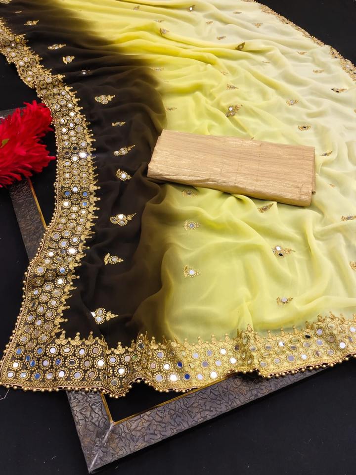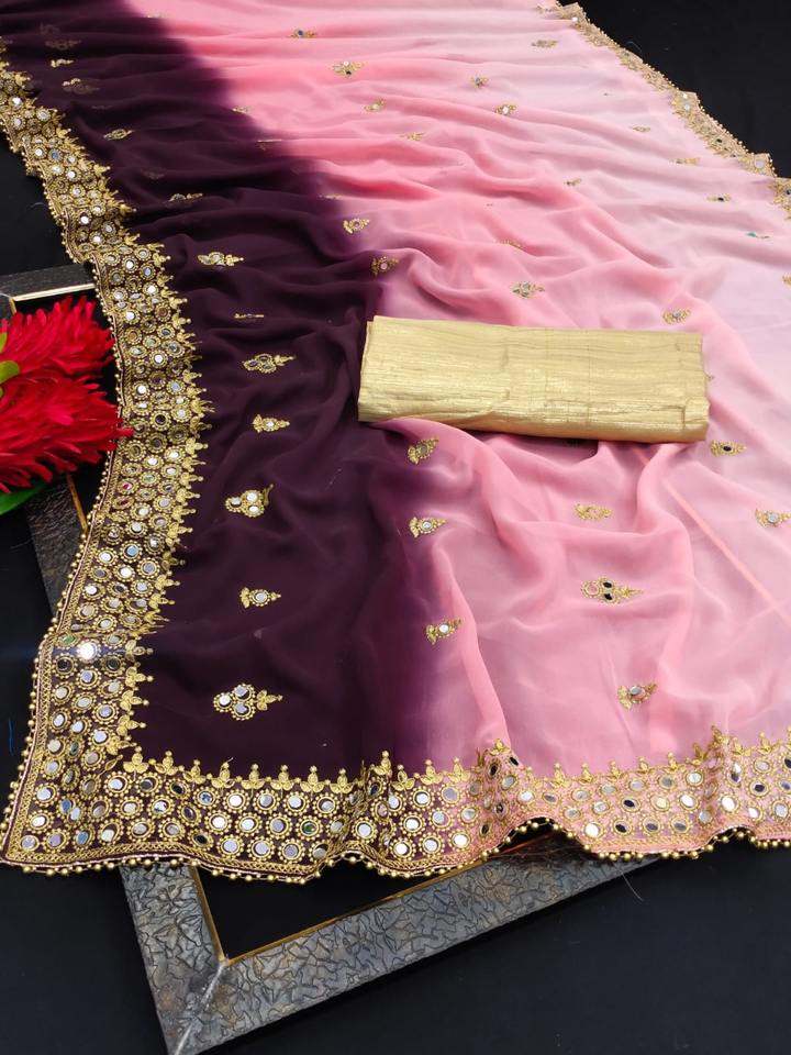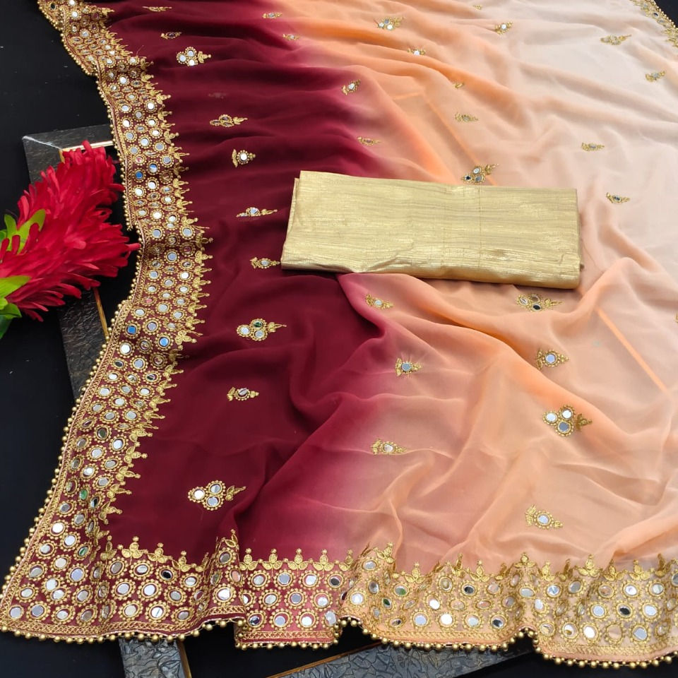 ชุดงานปาร์ตี้กระจก,ชุดส่าหรีแบบดั้งเดิมพร้อมงานปักลูกไม้