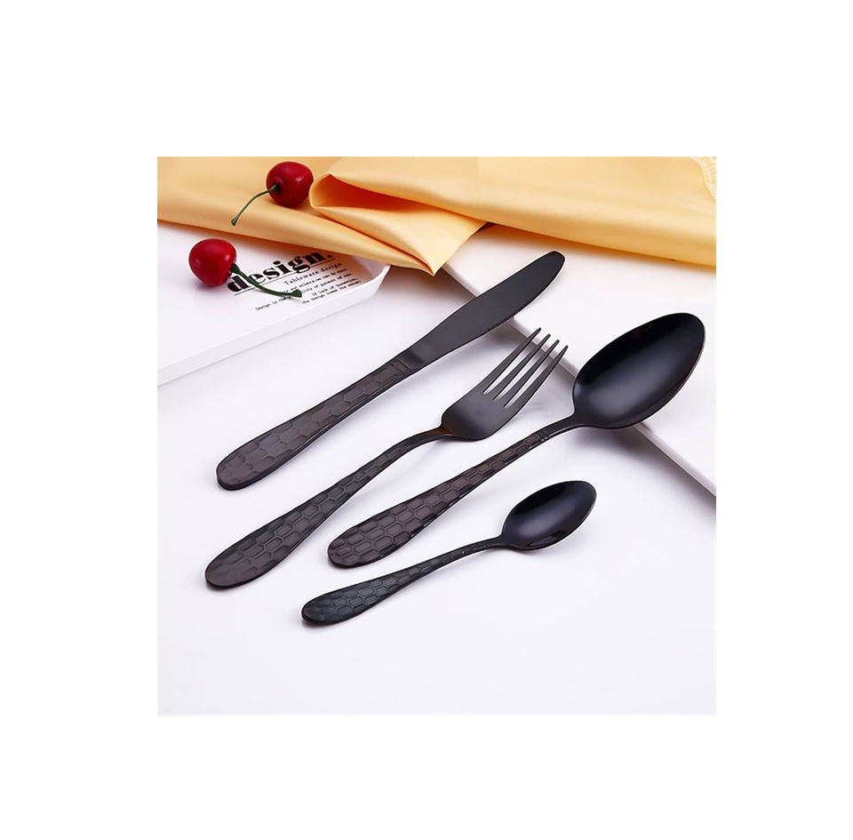 ชุดช้อนส้อมสแตนเลสสีดำ4ชิ้นทำจากกระจกอุปกรณ์เครื่องเงินช้อนส้อมสำหรับร้านอาหาร