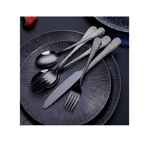 ชุดช้อนส้อมสแตนเลสกระจกมีดตัดเนยสีดำด้าน, ชุดมีดตัดของหวานดีไซน์ดอกไม้ทุบ5ชิ้น