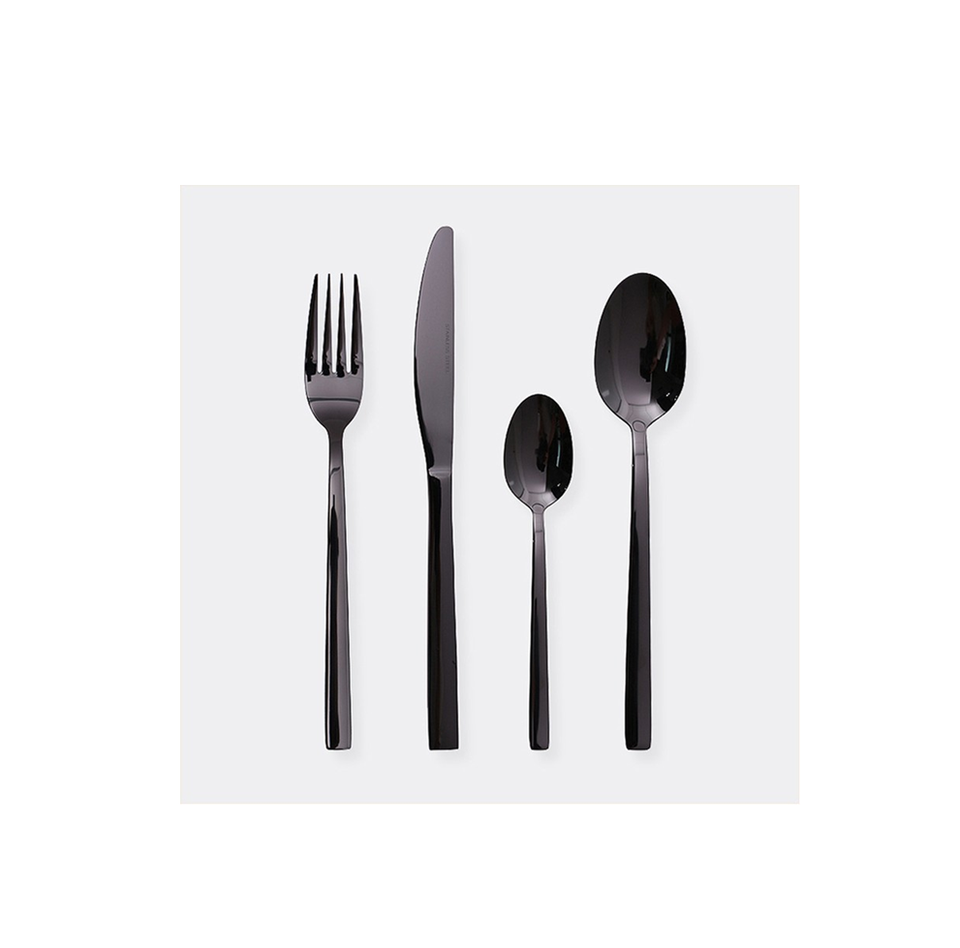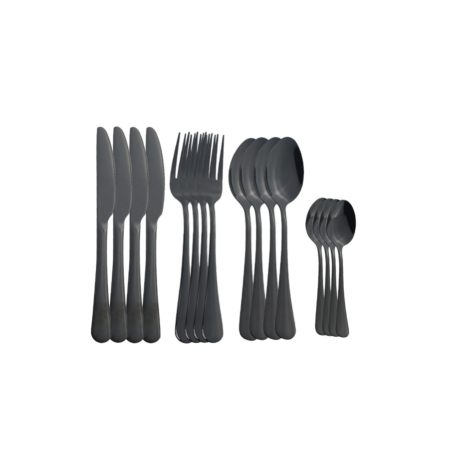 มิเรอร์สแตนเลสชุดเครื่องใช้บนโต๊ะอาหารคุณภาพสูงสีดำด้านชุดรับประทานอาหารสุดหรูช้อนและส้อมสำหรับงานแต่งงาน