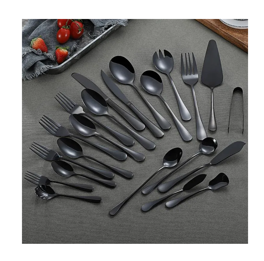 ช้อนมิเรอร์เหล็กช้อนขนมช้อนที่มีความต้องการสูงที่กำหนดเองช้อนโรงแรมร้านอาหารช้อนส้อมโรงแรมมีดที่จับหนา