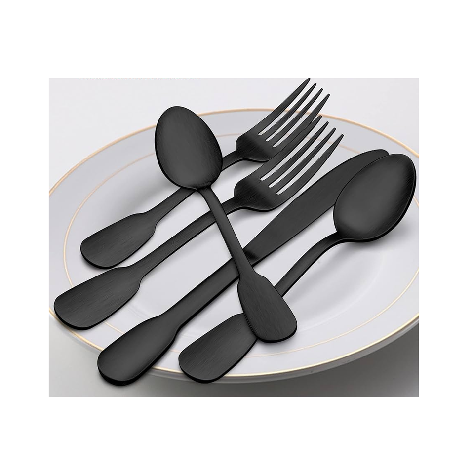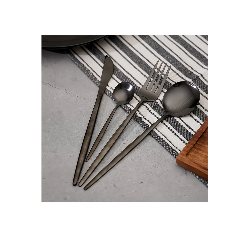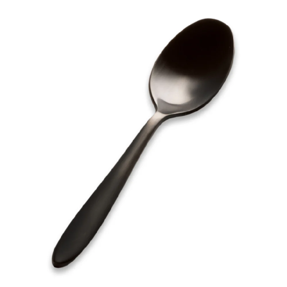 ชุดช้อนขนมมิเรอร์เหล็ก4/6/8/12ชิ้นเครื่องใช้บนโต๊ะอาหารงานหัตถกรรมขัดเงาสีดำด้าน