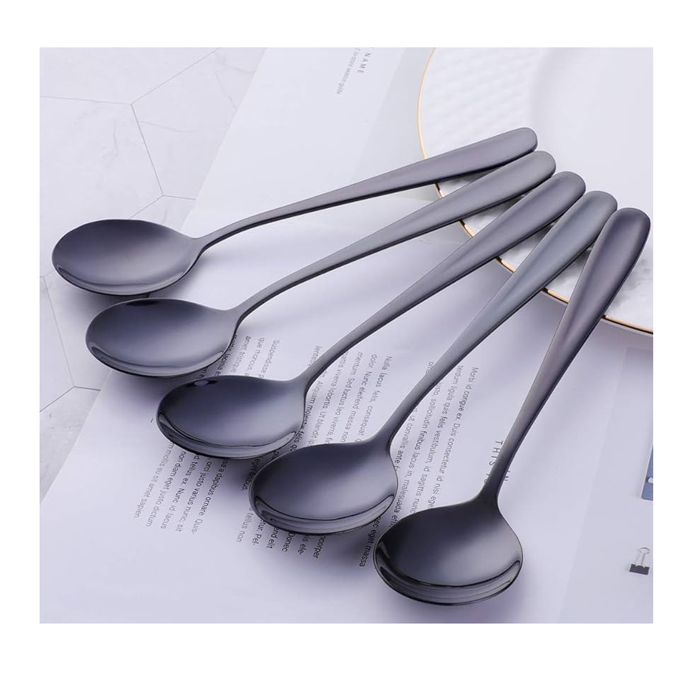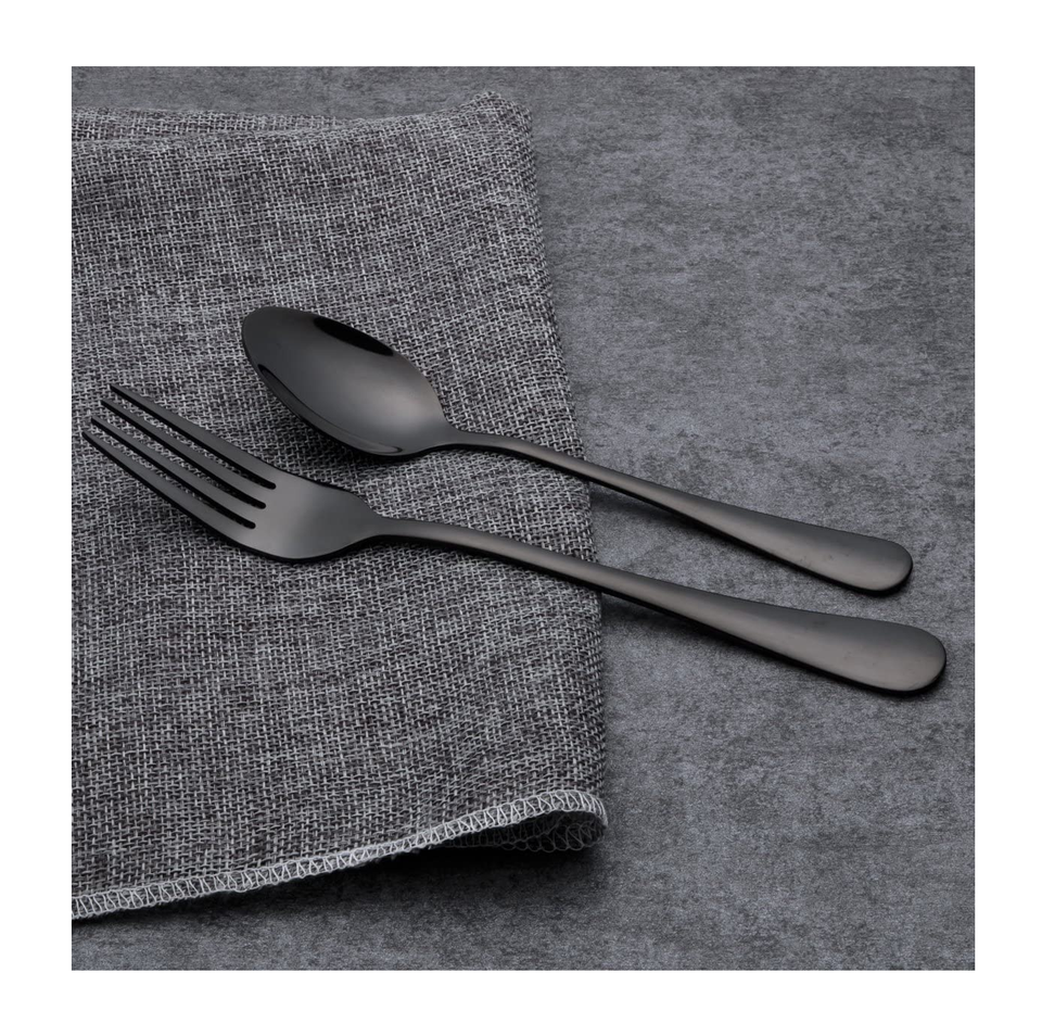 ชุดเครื่องใช้บนโต๊ะอาหารสำหรับร้านอาหารช้อนสีดำด้านทำจากเหล็กกระจก
