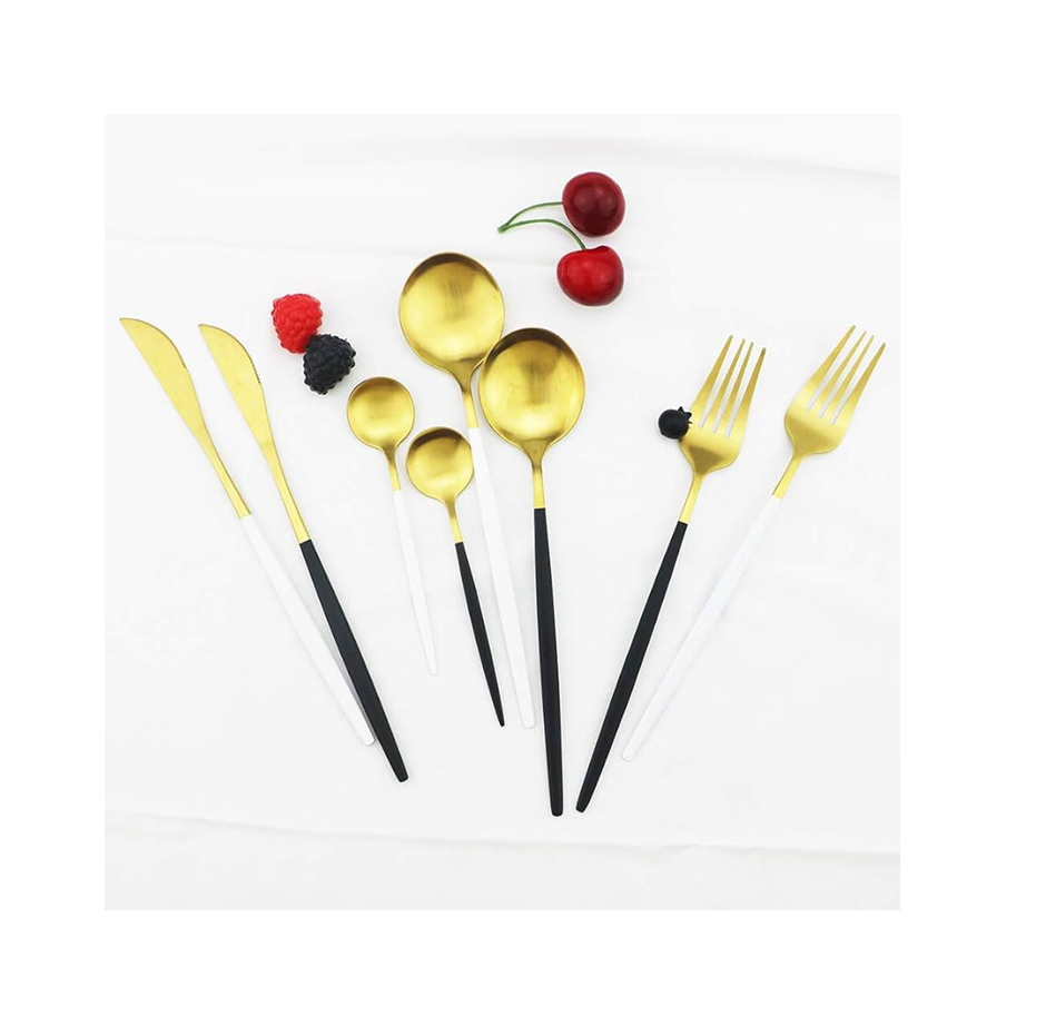 ชุดช้อนส้อมมีดด้ามเคลือบสีขาวชุดช้อนชาแบบไม่แตกทำจากเหล็กเคลือบสีขาว