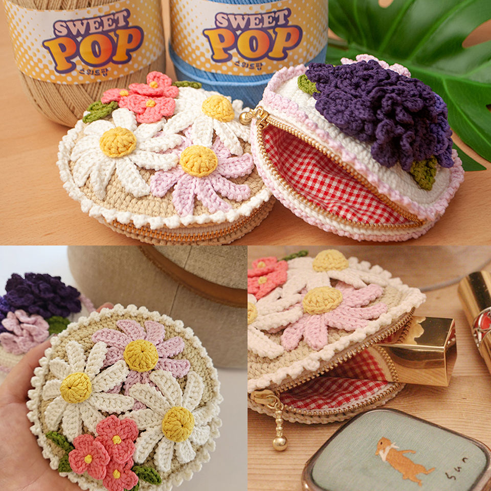 ไหมพรมไหมพรมถักสำหรับกระเป๋าและของขนาดเล็กสีสดใสแบบป๊อปหวานแหวววมีลวดลายดิบ