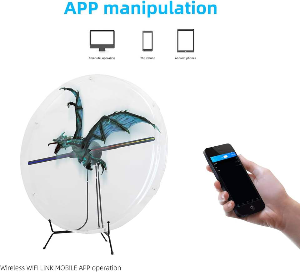 มิสยู ไฮเทค พัดลมโฮโลแกรม 3 มิติ พร้อมฝาครอบ จอแสดงผลโฆษณา LED พร้อมแอปและ WIFI สำหรับงานนิทรรศการและเทศกาลคริสต์มาส