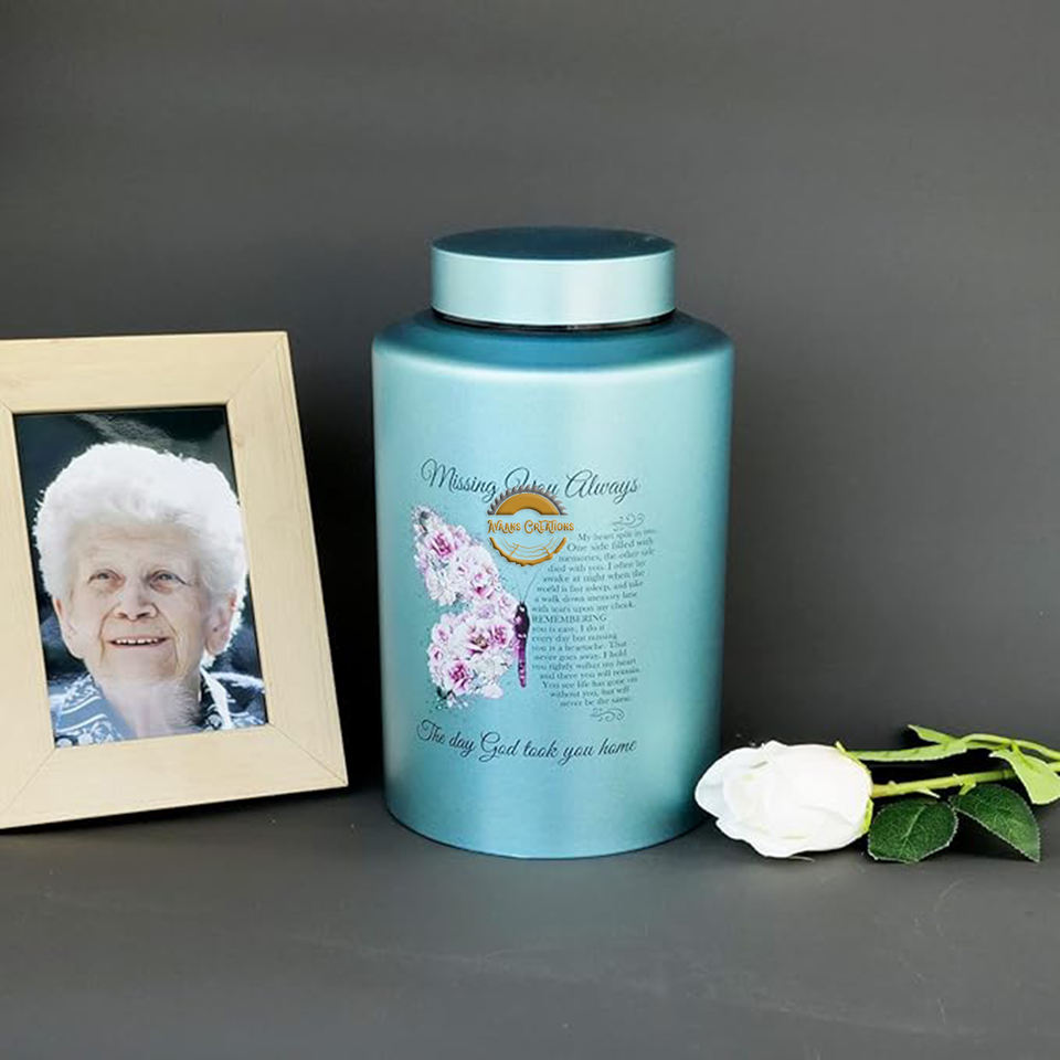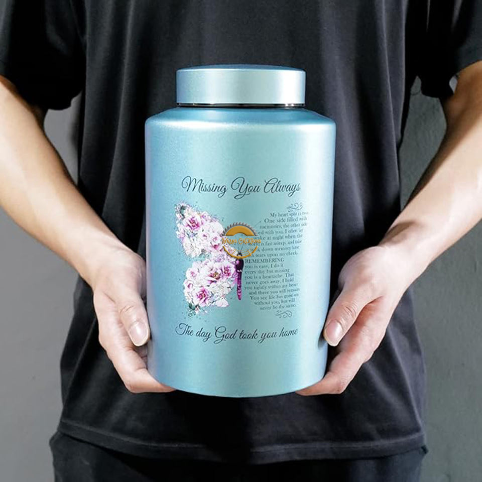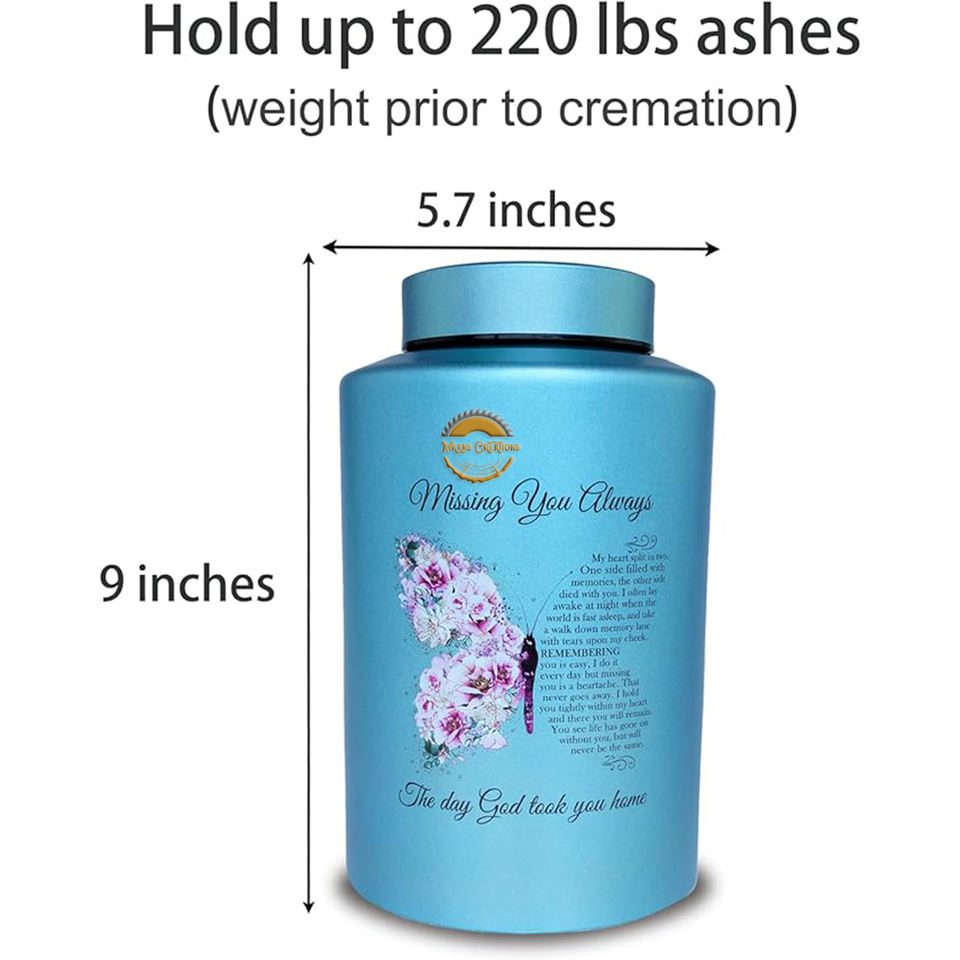 คิดถึงคุณเสมอโกศฌฌาปนกิจศพผีเสื้อสำหรับขี้เถ้า-สีน้ำเงินและสีขาวฝาปลอดภัยสัตว์เลี้ยงและของที่ระลึกของมนุษย์โดย ayaans