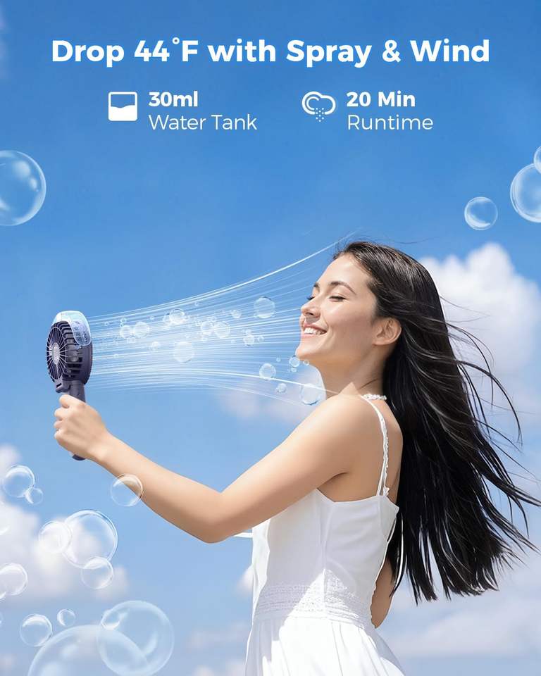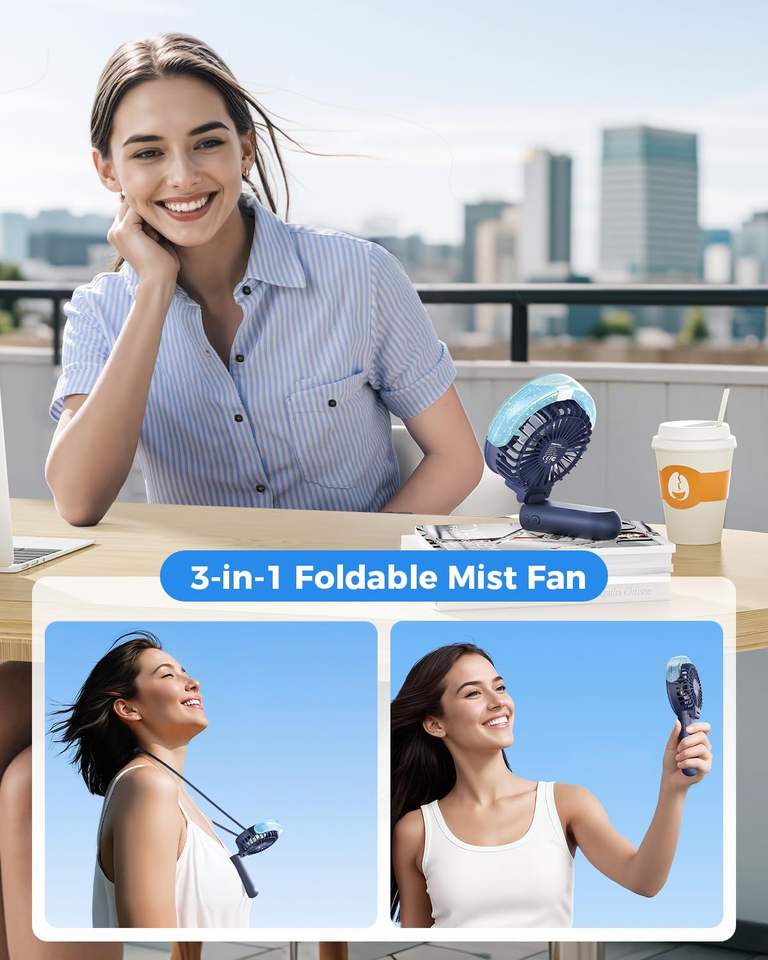 พัดลมพ่นหมอกแบบพกพา 180 พับได้ พ่นละอองน้ำแบบมือถือ 3 ระดับความเร็ว ถังน้ำ 30 มล. ชาร์จ USB ได้ สายคล้องคอ พกพาสะดวก