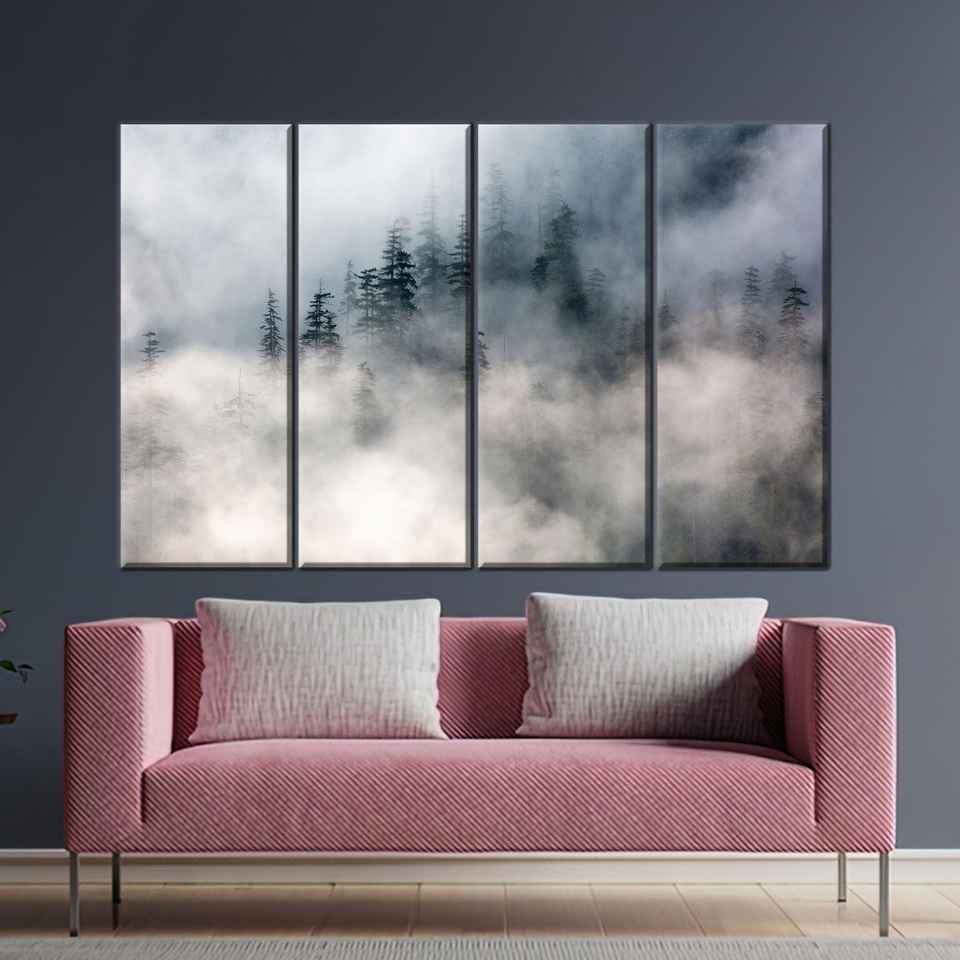 ผ้าใบพิมพ์ลายป่าสนมิสตี้สำหรับการตกแต่งสไตล์มินิมอลที่เรียบง่าย 4P: ห่อหุ้มอย่างดี