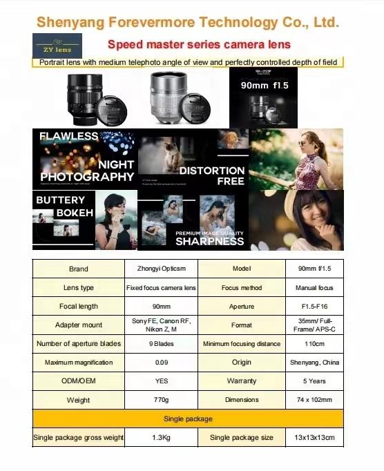 Mitakon Speedmaster 90mmF1.5เลนส์เทเลโฟโต้ขนาดใหญ่รูรับแสงคงที่ขนาดกลางสำหรับกล้องฟูลเฟรมตัวยึด E/rf/z/m