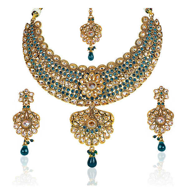 ชุดเครื่องประดับที่ดี mithya สร้อยคอหิน Kundan ชุบทองพร้อม Maang Tikka