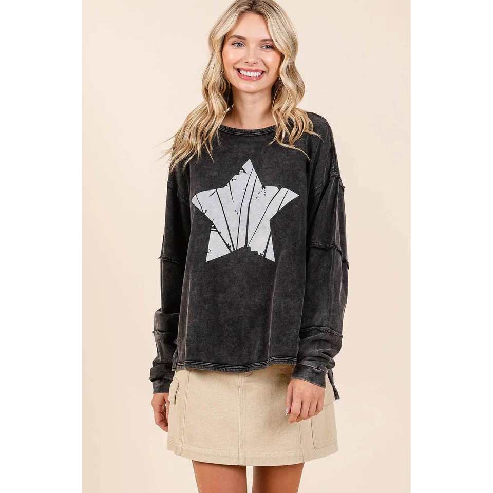 Mittoshop เสื้อแขนยาวผู้หญิงมีฮู้ดและสเวตเชิ้ตมิเนอรัลซักลายดาวกราฟิก