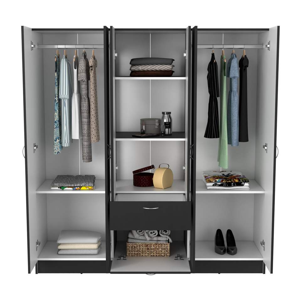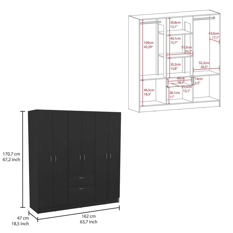 Mitu Seven-Interior-Shelf Six-Doors Armoire with One Drawer Black/White Rod-Wardrobe