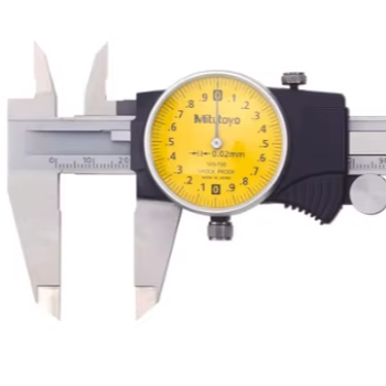 Mitutoyo 505หน้าปัดคาลิปเปอร์ซีรีส์ที่มีการอ่านง่ายหน้าปัดสีเหลืองและส่วนที่เหลือนิ้วขนาดใหญ่0.02สำเร็จการศึกษา/0.01มม.