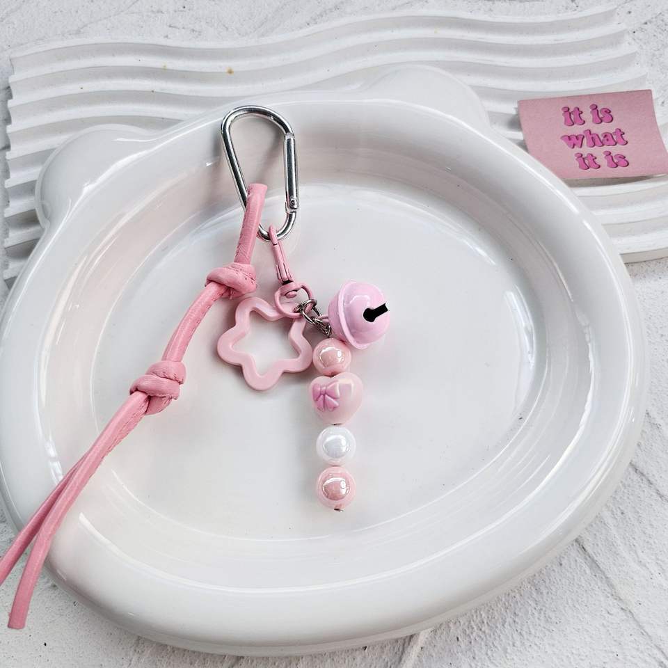 พวงกุญแจลูกปัดน่ารักแบบสร้างสรรค์ ซีรีส์ Miu พร้อมเชือกหนังถัก DIY สำหรับตกแต่งกระเป๋าเป้ พร้อมห่วงคาราไบเนอร์