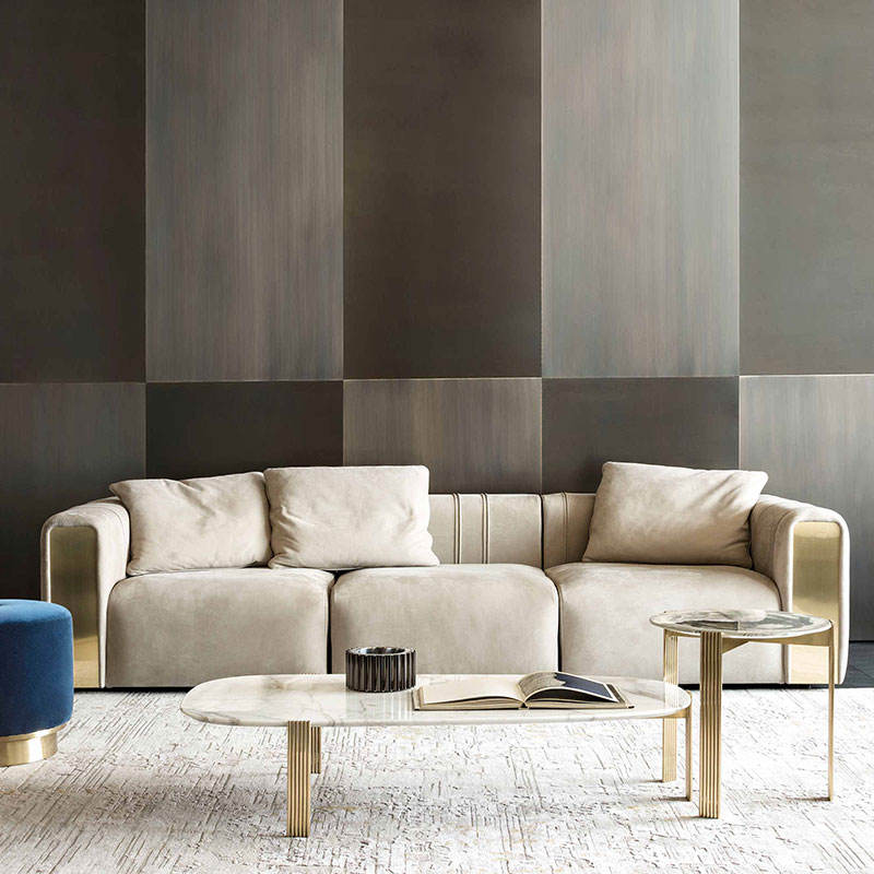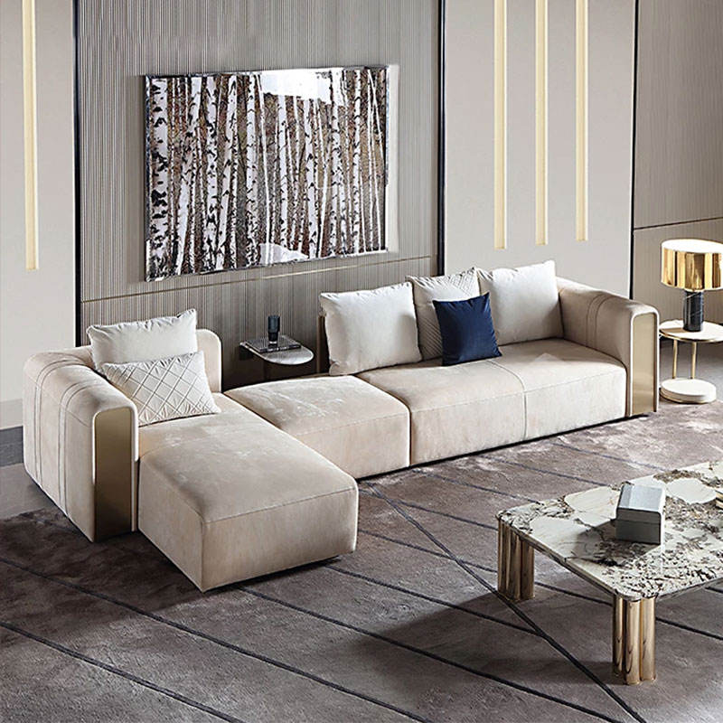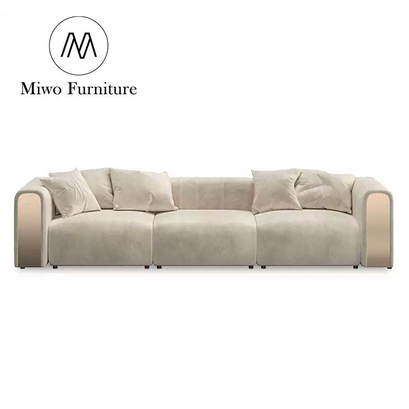 เฟอร์นิเจอร์ดีไซน์แบรนด์ Miwo เฟอร์นิเจอร์ห้องนั่งเล่น โซฟาคุณภาพสูง สีครีมขาว หนังแท้ 3 ที่นั่ง โซฟาเข้ามุมรูปตัว L โซฟาหรูหราทันสมัย