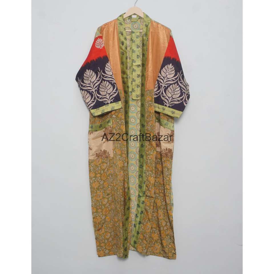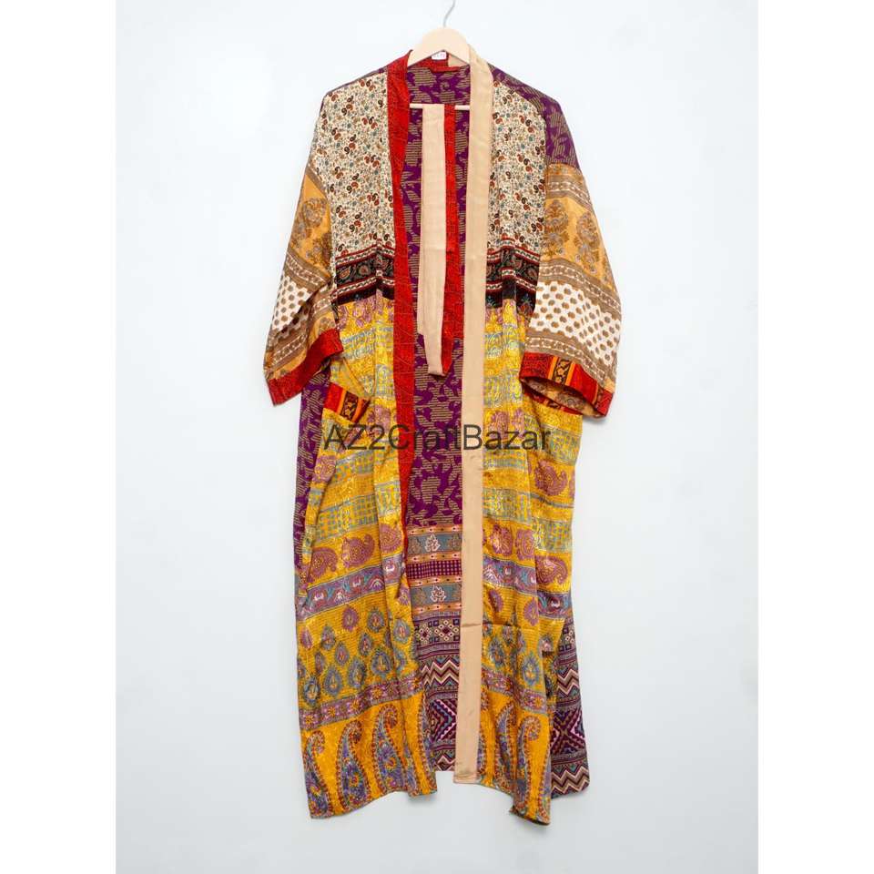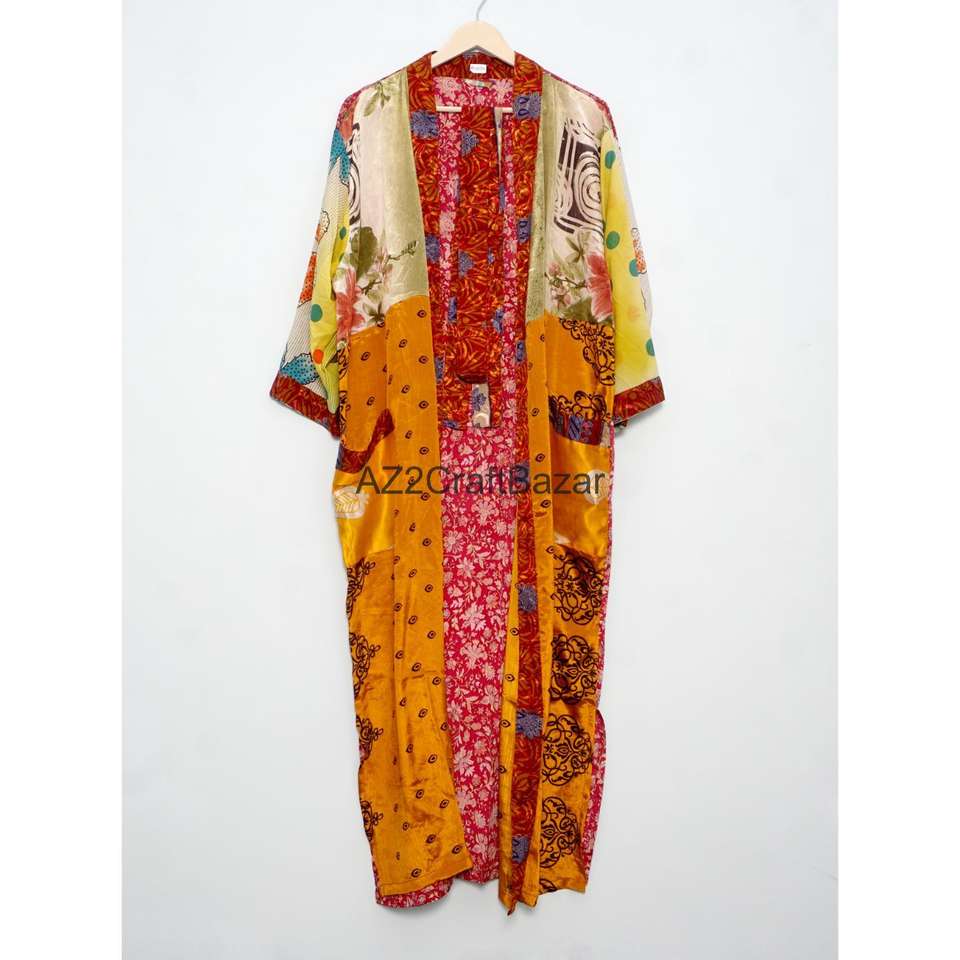 Mix Assorted Vintage Silk Kimono Robe Recycled Sari Bathrobe Indian Beach Cover Up Lightweight Boho Dressing Gown for Women