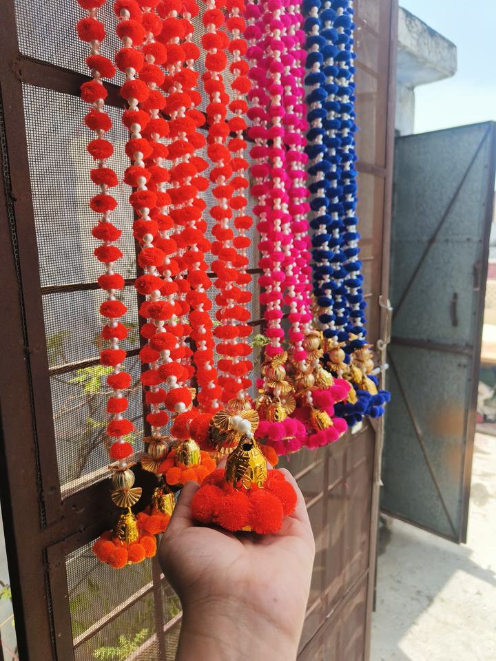 ชื่อผลิตภัณฑ์:พวงมาลัยปอมปอมพร้อมกระดิ่ง