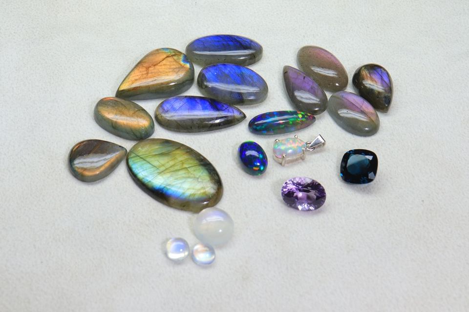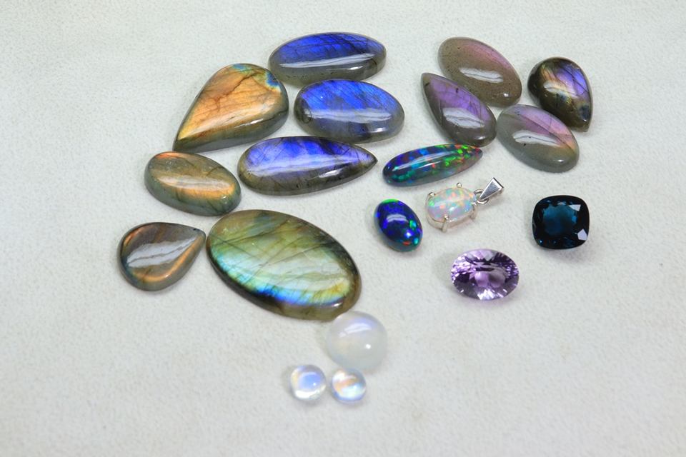 Opal, Amethyst, Labradorite, Rainbow moonstone, Topazวัสดุพลอย