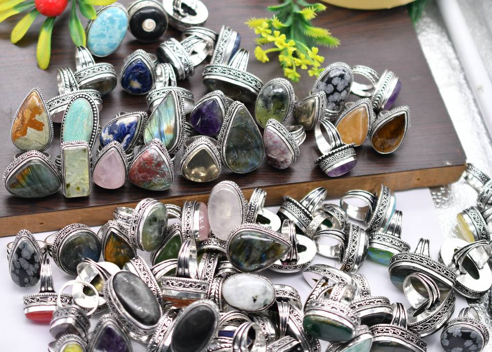 แหวนพลอยผสมสไตล์วินเทจ แหวนแฟชั่นสำหรับผู้หญิง แหวนพลอยเม็ดใหญ่ ขายส่ง แหวนเงินแท้ชุบ 925