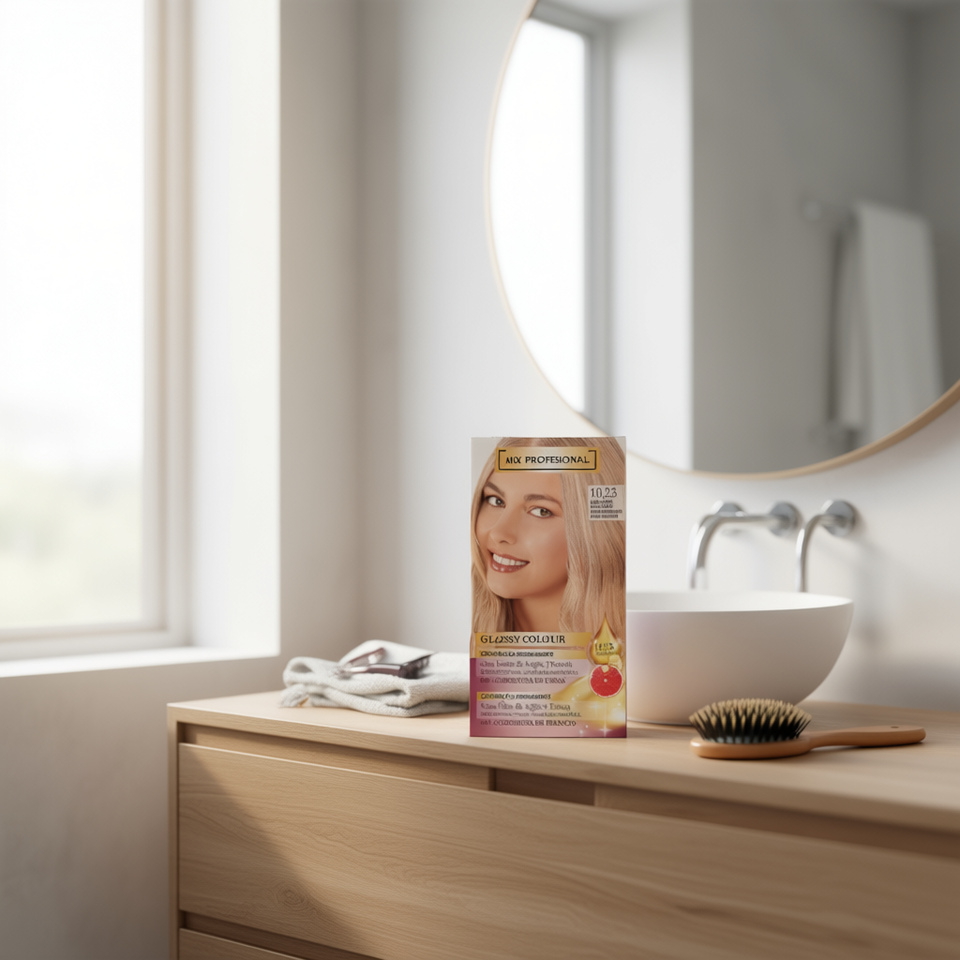 ชุดย้อมผมถาวรสีมิกซ์โปรเฟสชั่นแนล กลอสซี่ คัลเลอร์ 10 23 สีบลอนด์แพลตตินั่ม ผสมน้ำมันอาร์แกนและส้มโอ