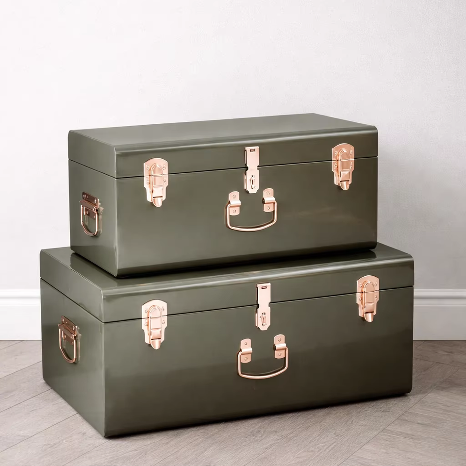 กล่องเก็บของโลหะสีฟ้าอ่อนและสีเหลือง กล่องเก็บของหลากสี