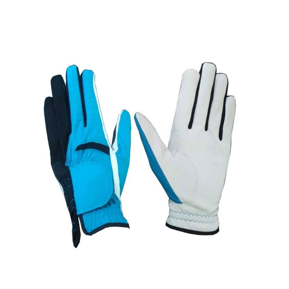 ถุงมือกอล์ฟหนังแกะ cabretta สีผสมสีขาวสีดำสีฟ้า
