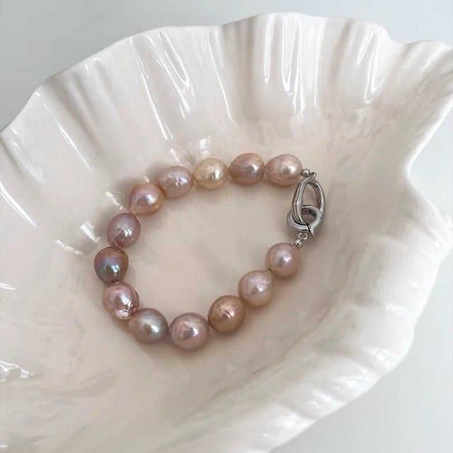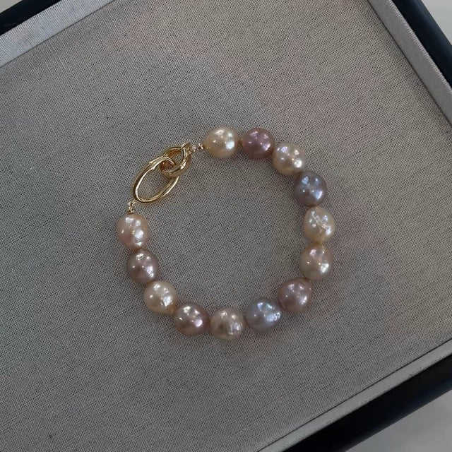 สร้อยข้อมือมุกบาร็อคธรรมชาติสีผสม สีลูกกวาด ขนาด 10-11 มม. ลูกปัดกลมขนาดใหญ่ กำไลข้อมือสุดหรู