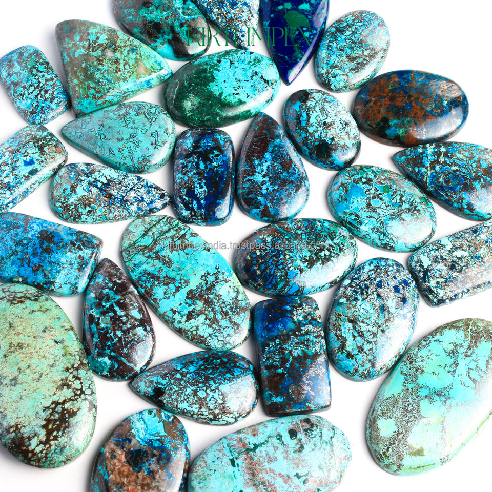 พลอยอัญมณีทรงหลวมกึ่งมีค่าคริสตัลอัญมณีเทอร์คอยซ์อะซูไรต์แท้ตัดเป็นแผ่นเรียบ
