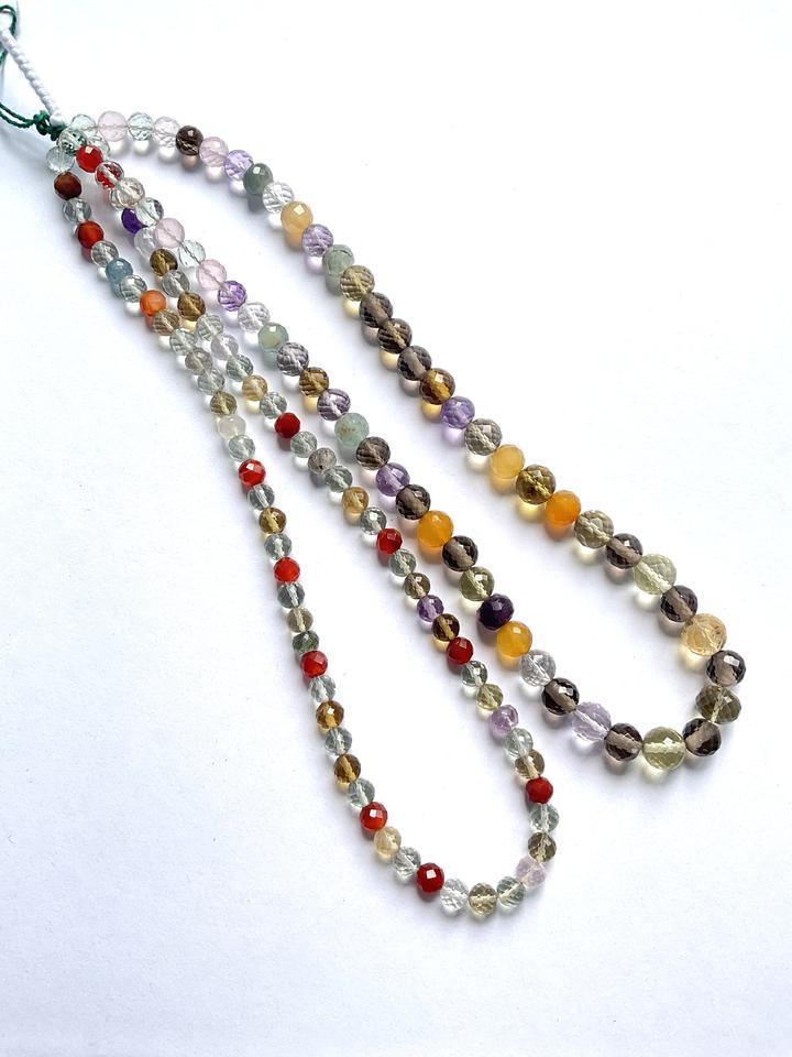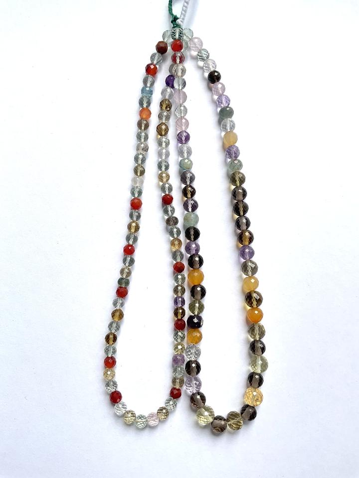 ลูกปัดพลอยผสมทรงกลมแบบเช็คเกอร์คัท 1 เส้น สำหรับทำเครื่องประดับชั้นดี