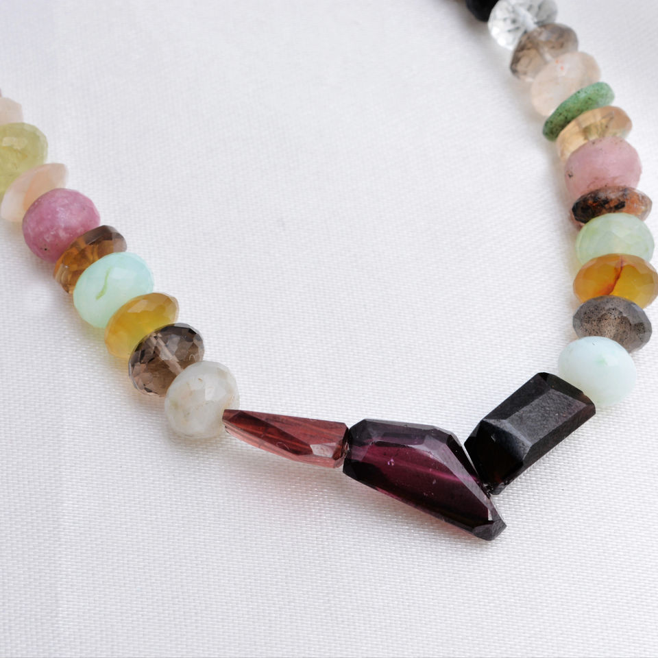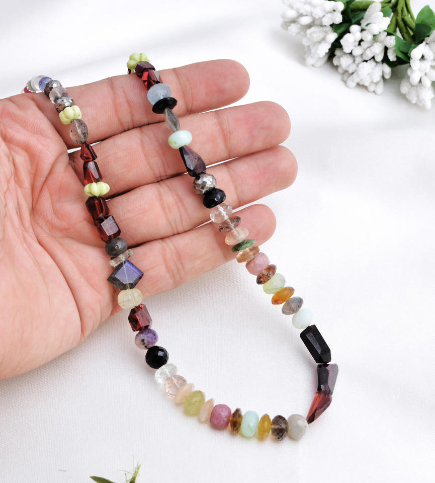 สร้อยคอลูกปัดอัญมณีผสมรูปทรงผสมขนาด L 16นิ้วลูกปัดอัญมณีเหลี่ยมเพชรพลอยผสมธรรมชาติสำหรับการทำเครื่องประดับที่ดีทำอัญมณี