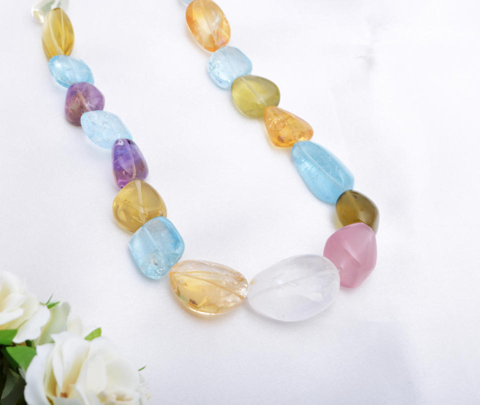 สร้อยคออัญมณีผสมแบบเรียบ L 18นิ้วลูกปัดหินอัญมณีผสมจากธรรมชาติสำหรับทำเครื่องประดับอัญมณีชั้นดี