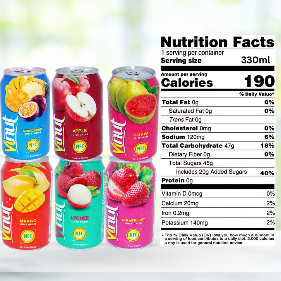 เครื่องดื่มน้ำผลไม้ผสม330มล. (11.1ฟล็อซ) โรงงานเครื่องดื่มเวียดนามปราศจากน้ำตาลราคาส่งฉลากส่วนตัว