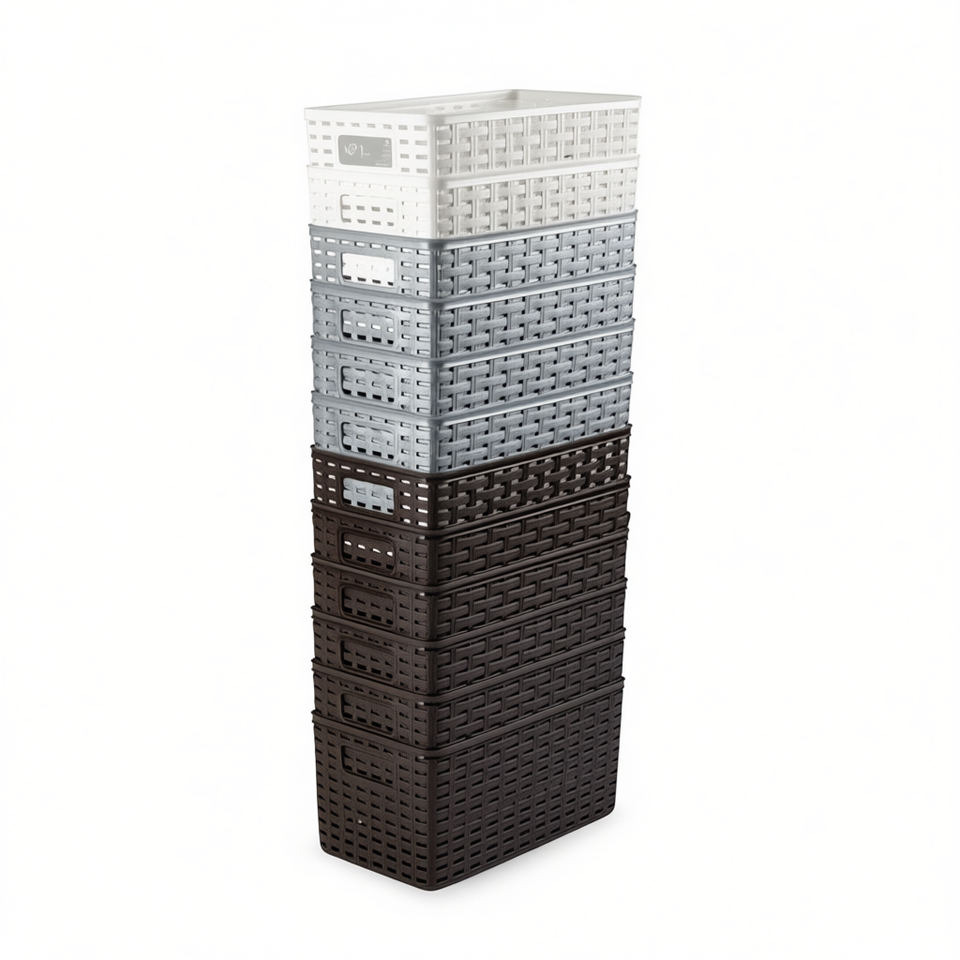 ตะกร้าใส่ของพลาสติกทรงสี่เหลี่ยมผืนผ้าพร้อมด้ามจับ5L No.1หวายเซสต้าขนาด28x15ซม. คละแบบอเนกประสงค์สเปน