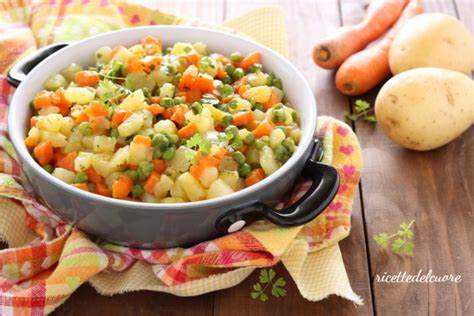มันฝรั่ง, ถั่วลันเตา, แครอท, น้ำ, เกลือ