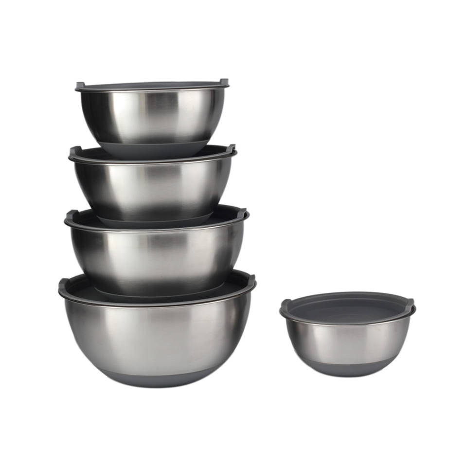 ชามผสมชุด5ชิ้นชุดชามสลัดสแตนเลสพร้อมฝาปิดสุญญากาศ