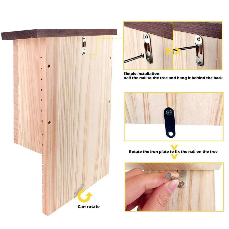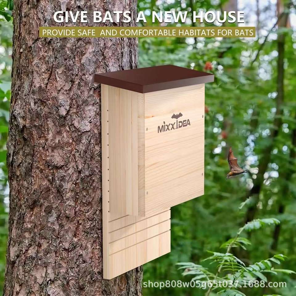 บ้านค้างคาวไม้ทรงสี่เหลี่ยมผืนผ้า Mixxidea สำหรับสวนกลางแจ้ง ทนทาน ทำจากไม้เนื้อแข็ง เป็นที่อยู่อาศัยสำหรับค้างคาว