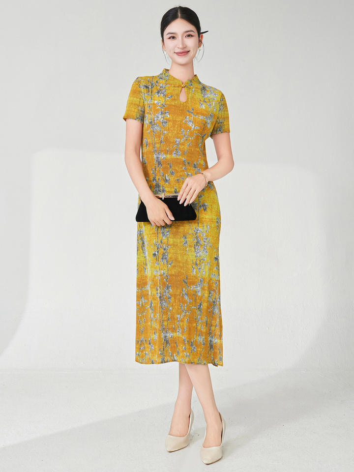 ชุดเดรสพิมพ์ลายอัดพลีท