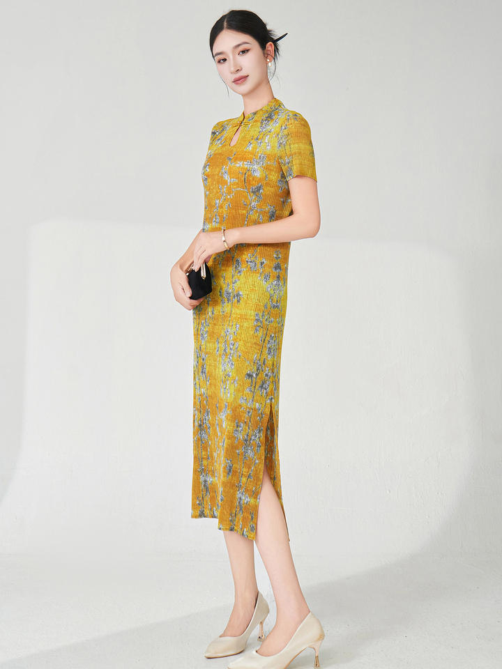 Miyake ชุดเดรส2025พิมพ์ลายคุณภาพสูงสไตล์จีน, ชุดราตรีหรูหราสำหรับฤดูร้อน