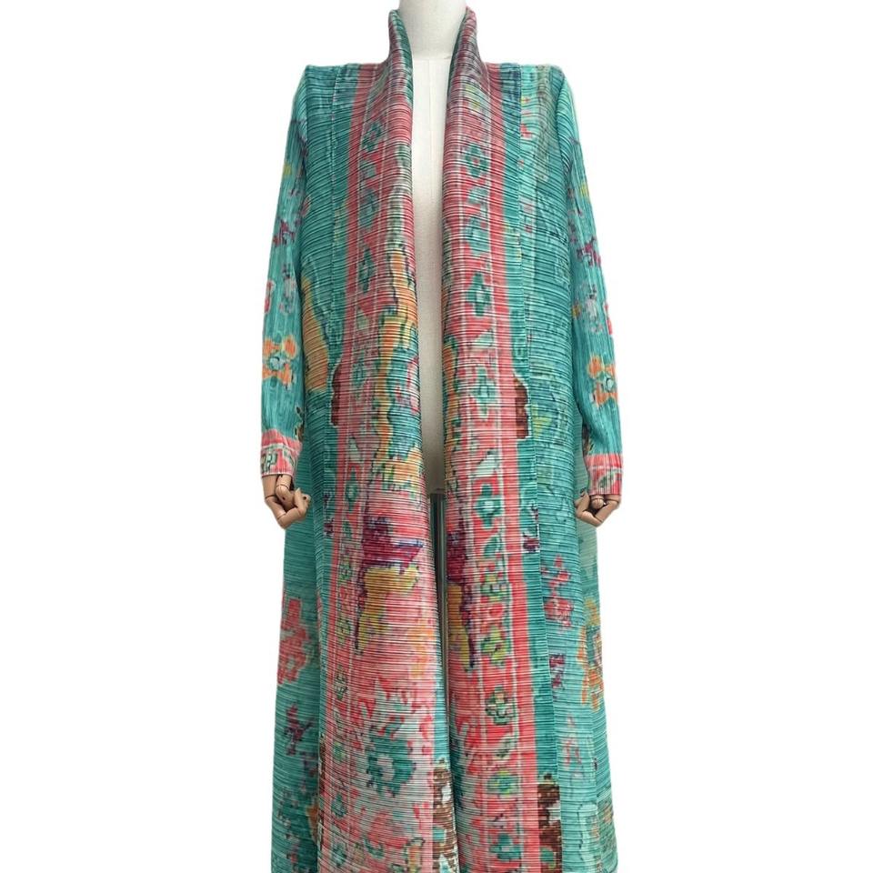 Miyake เสื้อคลุมยาวของผู้หญิงพิมพ์ลาย, เสื้อคลุมยาวฤดูใบไม้ร่วงร้อยกันลม