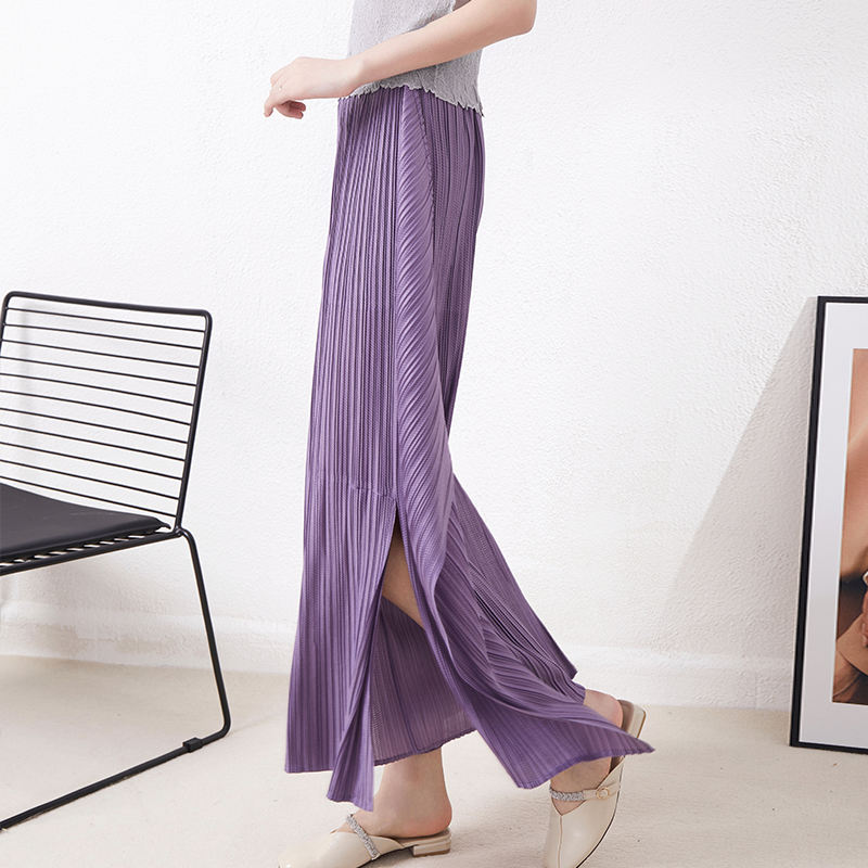 Miyake กางเกงฮาเร็มเอวสูงเอวสูงเอวยางยืดของผู้หญิงกางเกงลำลองทรงหลวมเป็นมิตรต่อสิ่งแวดล้อม