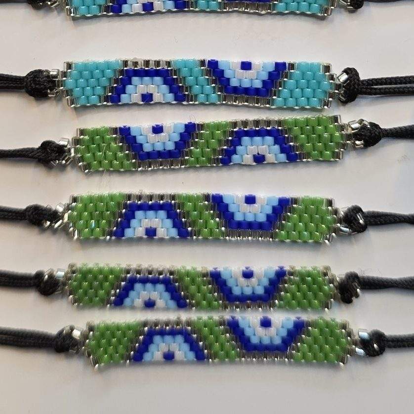 Miyuki Bohemian Green Ribbon Evil Eye Bracelet Gold Plated Beaded Charm with Pearl Religious Style Numbered Pattern