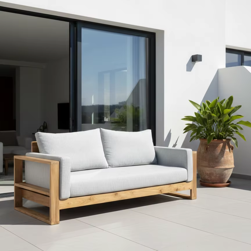 โซฟากลางแจ้ง Mizu 2 ที่นั่ง เฟอร์นิเจอร์ไม้สักอินโดนีเซียระดับพรีเมียม พัฒนาขึ้นเพื่อดีลเลอร์ทั่วโลกด้วยราคาที่แข่งขันได้
