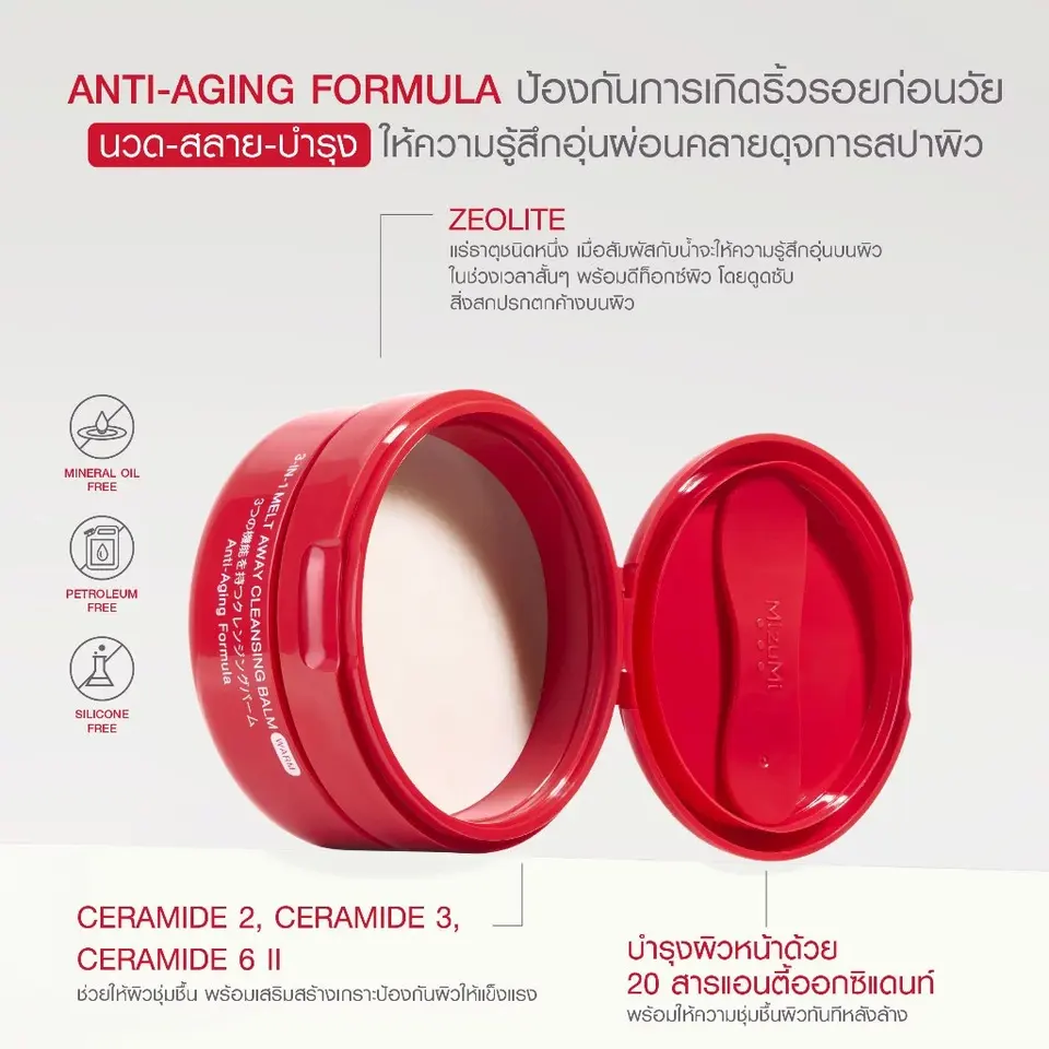 มิซูมิ 3-อิน-1 เมลท์อะเวย์ คลีนซิ่ง บาล์ม ผลิตภัณฑ์อุ่นๆ จากประเทศไทย